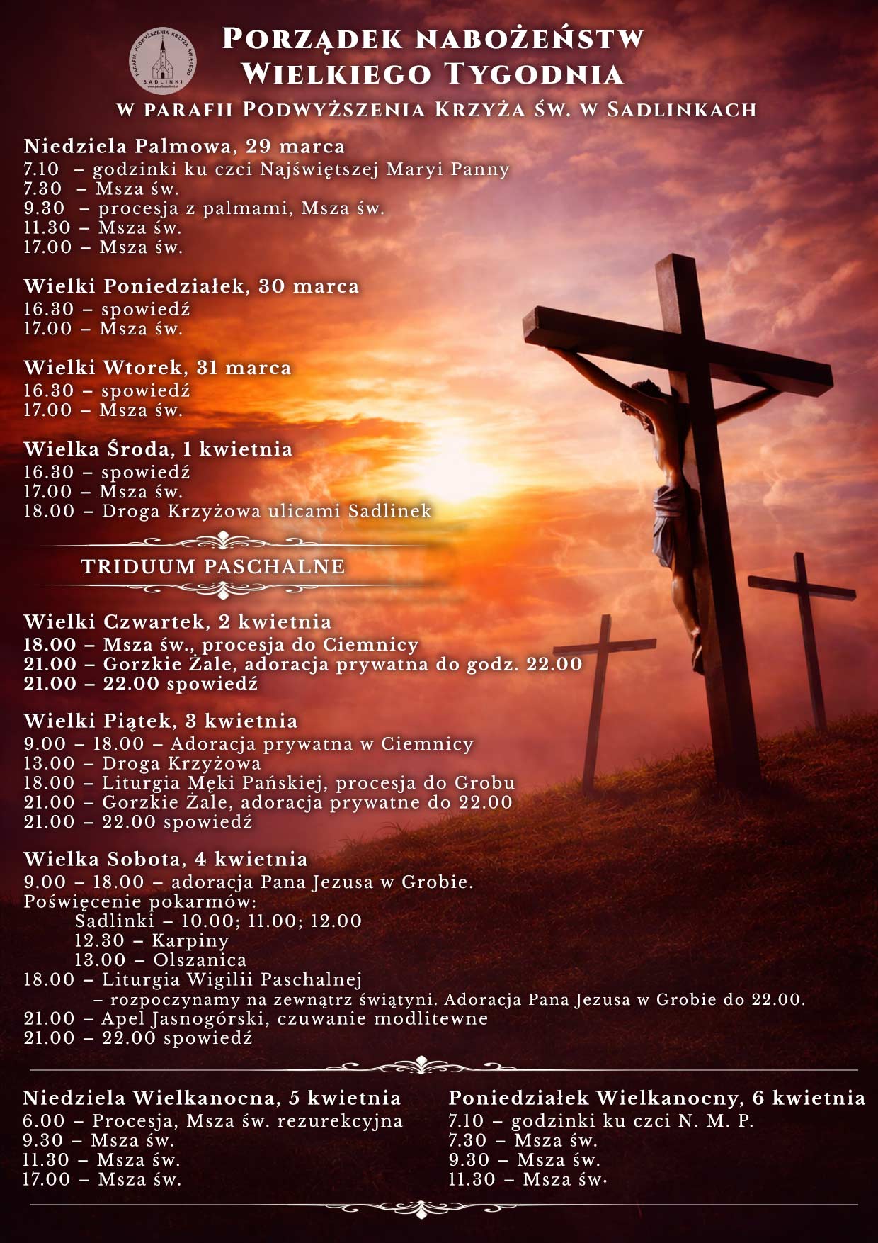 W Wielką Środę, 1 kwietnia 2026 r., ulice Sadlinek stały się drogą modlitwy i refleksji. O godzinie 18:00 wyruszyliśmy z kościoła, by przejść trasą prowadzącą przez ulice: Kwidzyńską, Tartaczną, Lipową, Akacjową, Cisową, Świerkową, Dębową oraz Jaworową. To nabożeństwo pozwoliło nam wspólnie przeżyć symboliczny marsz Jezusa ulicami Jerozolimy w stronę wzgórza Ukrzyżowania.